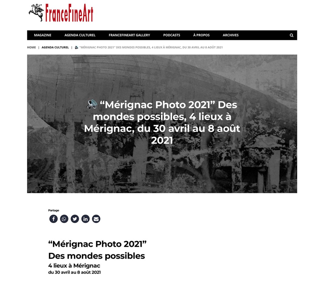 20 artistes internationaux / 4 lieux dans la villeDates : dès levée des restrictions sanitaires – 8 août 2021(expos en extérieur et à la médiathèque visibles dès le 30 avril)+ d’infos : www.merignac-photo.comMondes inconnus, fantasmés, non advenus… Sous le thème « Des mondes possibles », le Mérignac Photo 2021 invite à rêver le monde et ses représentations. D’une incroyable actualité, ce thème programmé initialement pour le printemps 2020 questionne notre rapport au(x) temps, à l’interdépendance entre passé, présent et futur. « Des mondes possibles » propose aussi de penser l’évolution de notre rapport aux images, leur rôle dans notre connaissance et notre compréhension du monde. Avec Juliette Agnel Vincent Chevillon Sandrine Elberg Thierry Fournier Aurelien Mauplot Rubén Martín de Lucas Mohau Modisakeng Jennifer Niederhauser Schlup Guido van der Werve Lionel Bayol-Thémines Persijn Broersen & Margit Lukács Maryse Goudreau Léa Habourdin ARN – Atlas des Régions Naturelles Nelly Monnier Eric Tabuchi Gregory Chatonsky Michel Le Belhomme Meryl McMaster Gideon Mendel