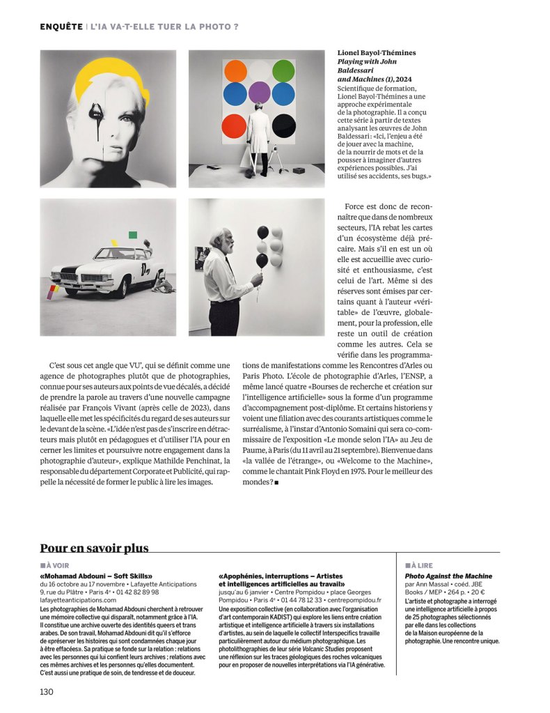 Un bel article sur la photo et l’IA par Sophie Bernard dans Beaux Arts Magazine du mois de novembre. Playing with John Baldessari and machines y est reproduit.