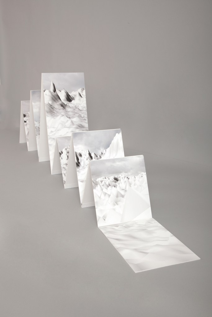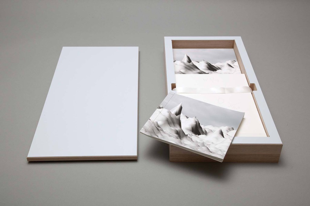 Livret à part en feuilles transparentes, sulfurisées, et papier Rives sous reliure japonaise en fil nacré blanc et reproduisant quelques images ainsi que des extraits du Journal de voyage dans les alpes bernoises de G.W.F. Hegel. Numéroté et signé à la main au colophon par l’artiste.