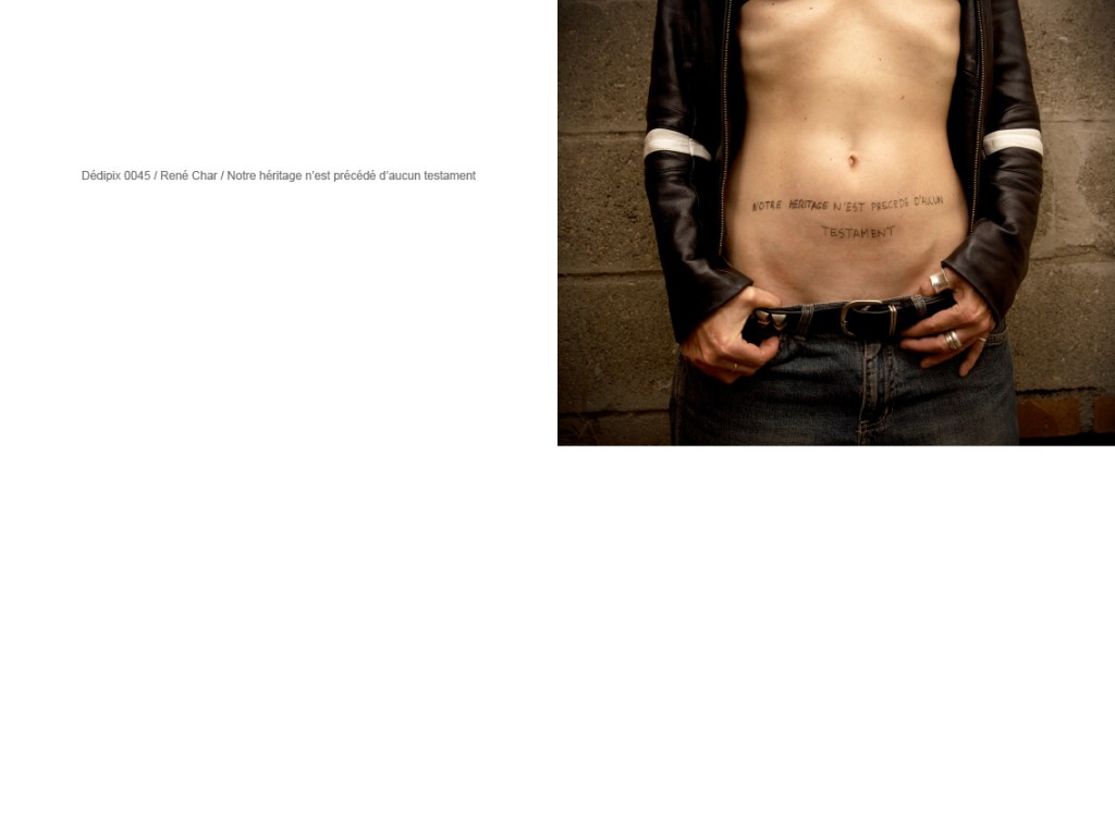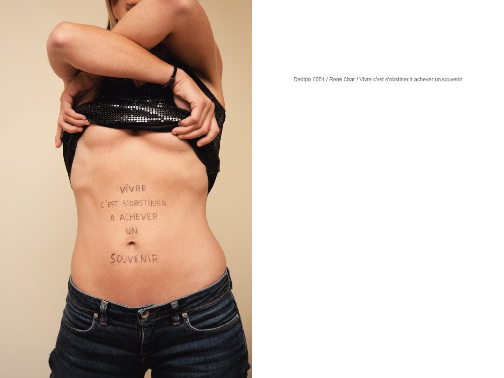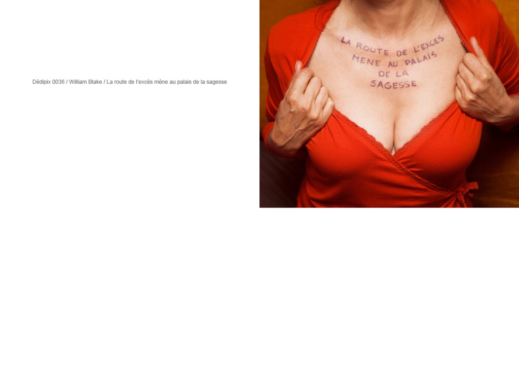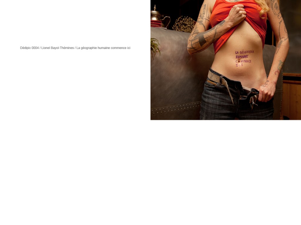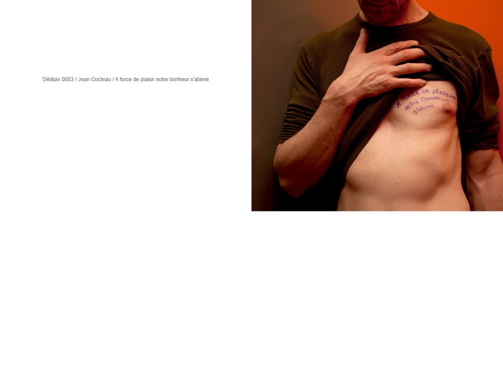 Ce leporello a été édité par Lionel Bayol-Thémines à 30 ex au format 20x30x340 cm et présenté sous étuis de Plexiglas. Ce livre est tiré dans sa globalité sur papier argentique couleur Fujicolor Crystal Archive suprême. Il est composé de trente pages et de quinze photographies ( extraite de la série Dédipix) et de 14 citations d’auteurs du 20 ème siècle