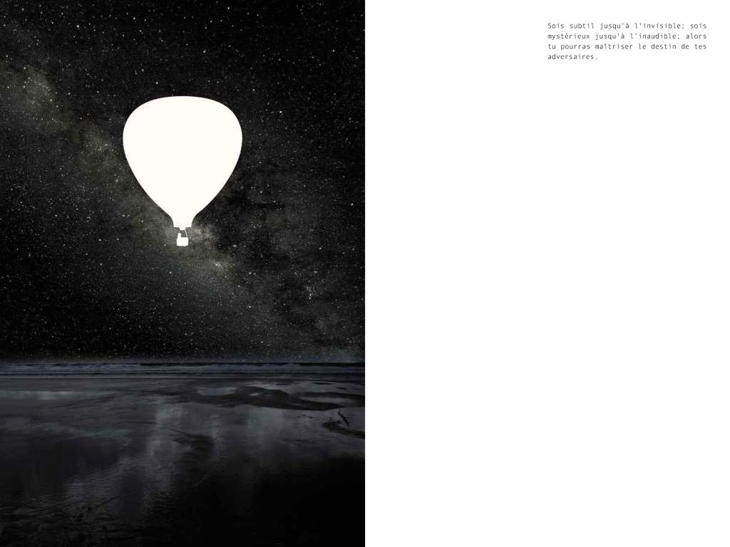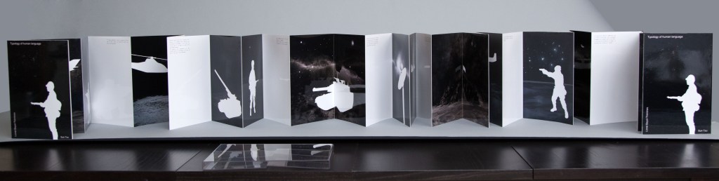 Ce leporello a été édité par Lionel Bayol-Thémines en mars 2014 à 30 ex au format 20x30x340 cm et présenté sous étuis de Plexiglas. Ce livre est tiré dans sa globalité sur papier argentique couleur Fujicolor Crystal Archive suprême. Il est composé de trente pages et de quinze photographies ( extraite de la série Typology of Human Language) et de dix extraits de l’art de la guerre de Sun Tzu, traduction du chinois du père Amiot.