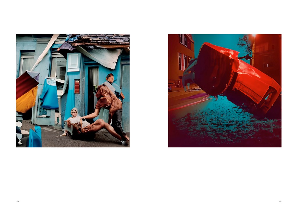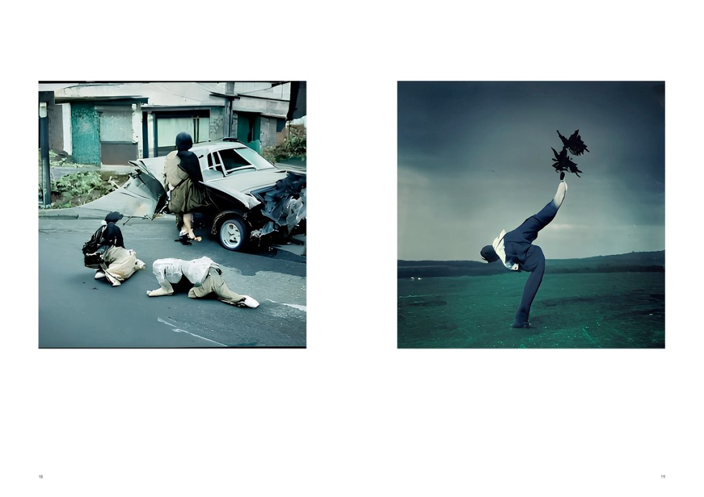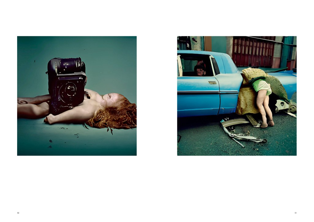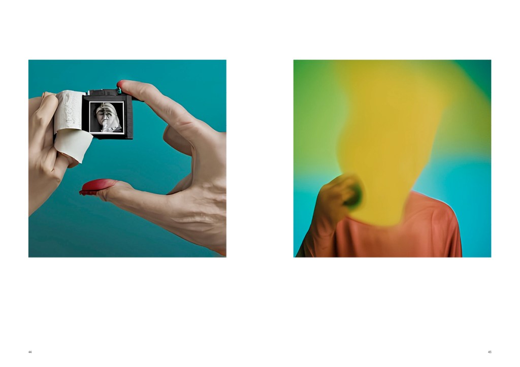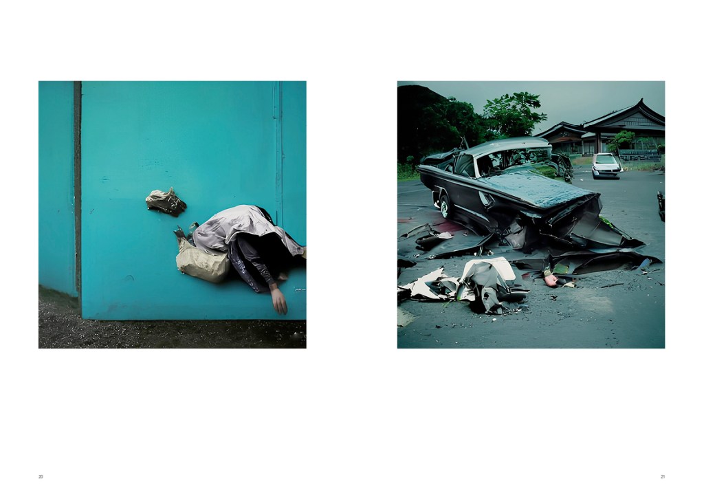 Ces images sont issues d’une performance collaborative avec un réseau neuronal (IA) auquel est soumis en continu la même phrase (en plusieurs langues) pendant plusieurs jours consécutifs en modifiant seulement une des variables. La phrase est constituée des mots récurrents : Accidents photographiques, photographie expérimentale, histoire de la photographie du 20° siècle, couleur + une variable. Plusieurs milliers d’images ont été ainsi créés dont une sélection d’environ 200 imagesa été gardée. Cette performance explore l’univers des accidents photographiques(1), de la photographie “ratée“ des expérimentation de la photographie plasticienne du 20° siècle.