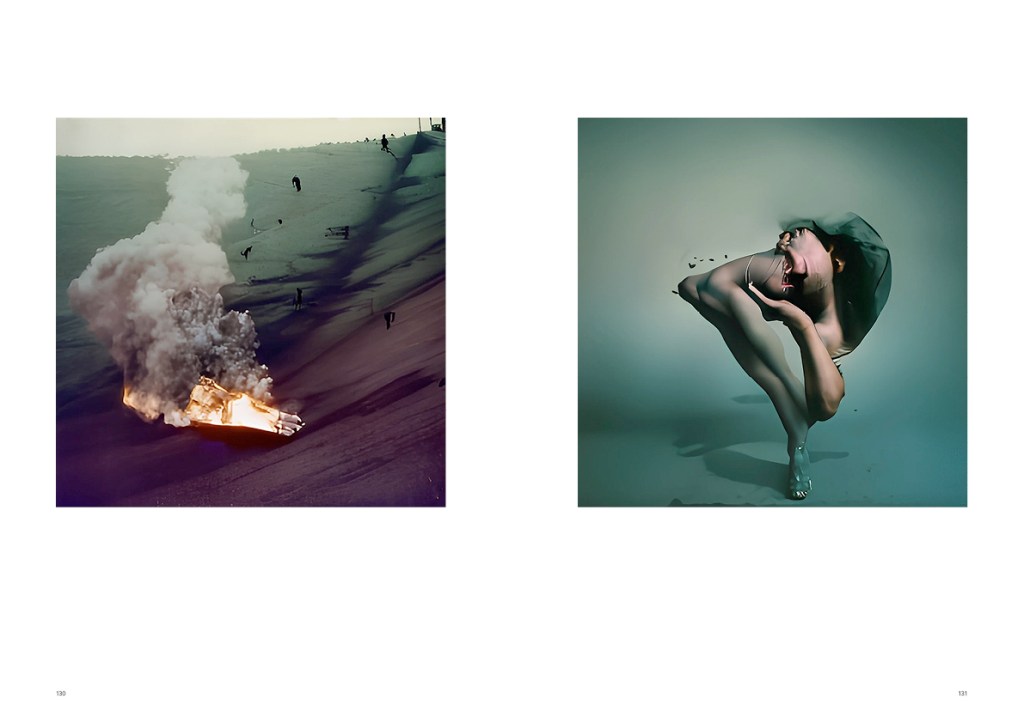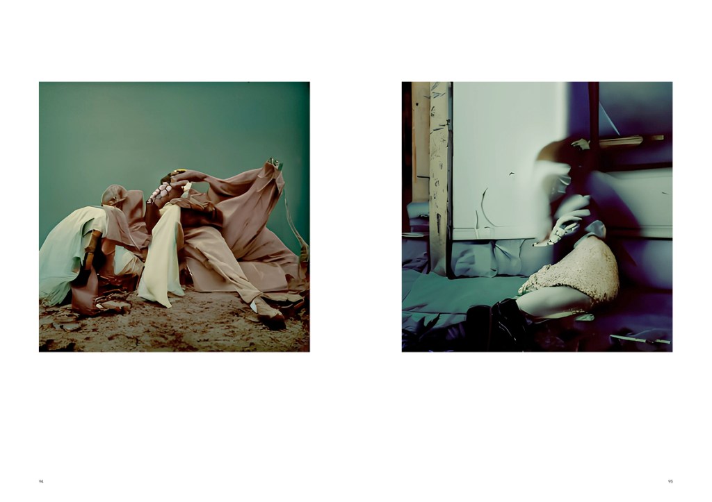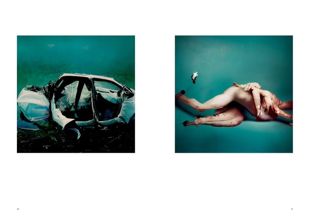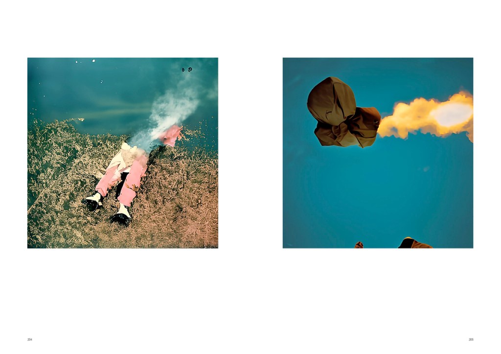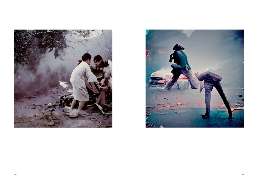 Ces images sont issues d’une performance collaborative avec un réseau neuronal (IA) auquel est soumis en continu la même phrase (en plusieurs langues) pendant plusieurs jours consécutifs en modifiant seulement une des variables. La phrase est constituée des mots récurrents : Accidents photographiques, photographie expérimentale, histoire de la photographie du 20° siècle, couleur + une variable. Plusieurs milliers d’images ont été ainsi créés dont une sélection d’environ 200 imagesa été gardée. Cette performance explore l’univers des accidents photographiques(1), de la photographie “ratée“ des expérimentation de la photographie plasticienne du 20° siècle.