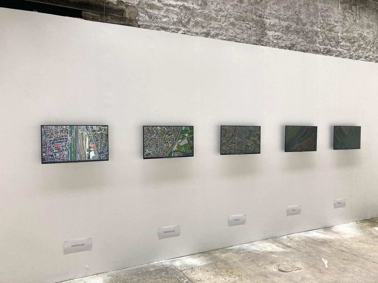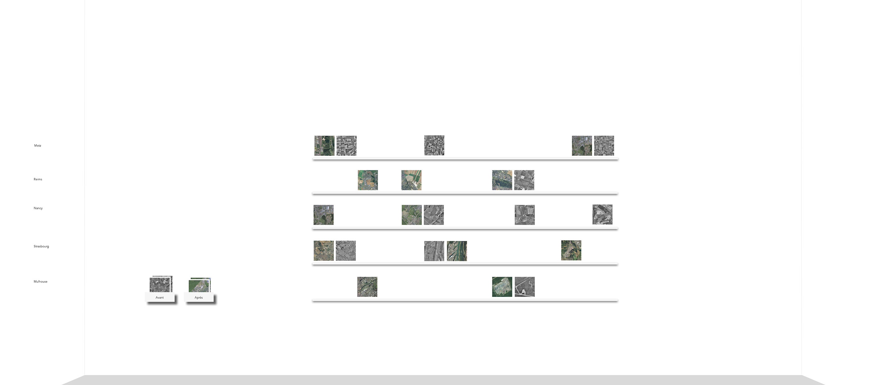5 photographies sur toile de l’occupation des sols des villes de Reims, Metz, Nancy, Strasbourg, Mulhouse.