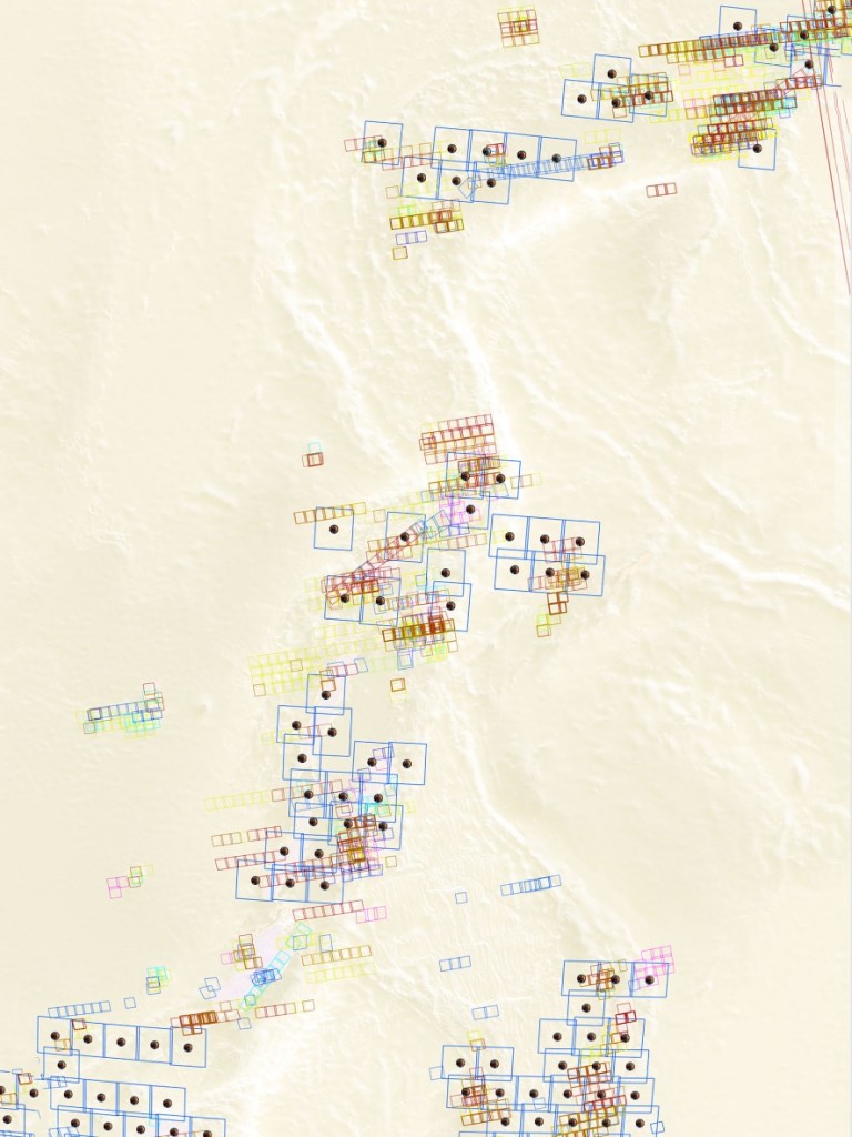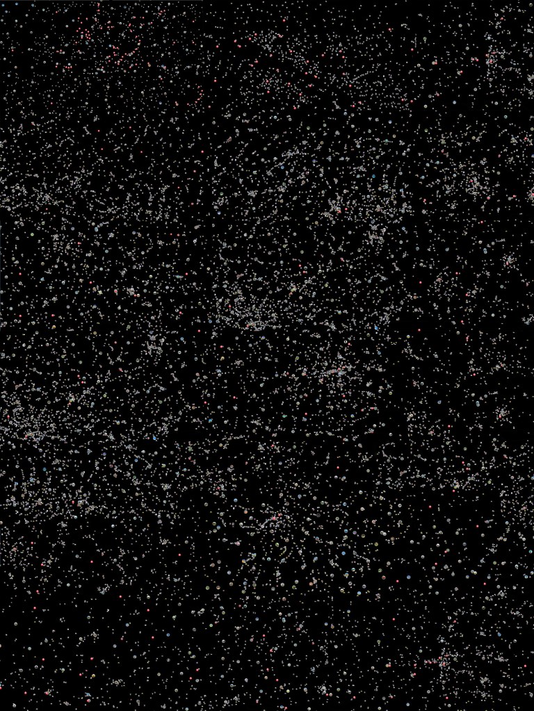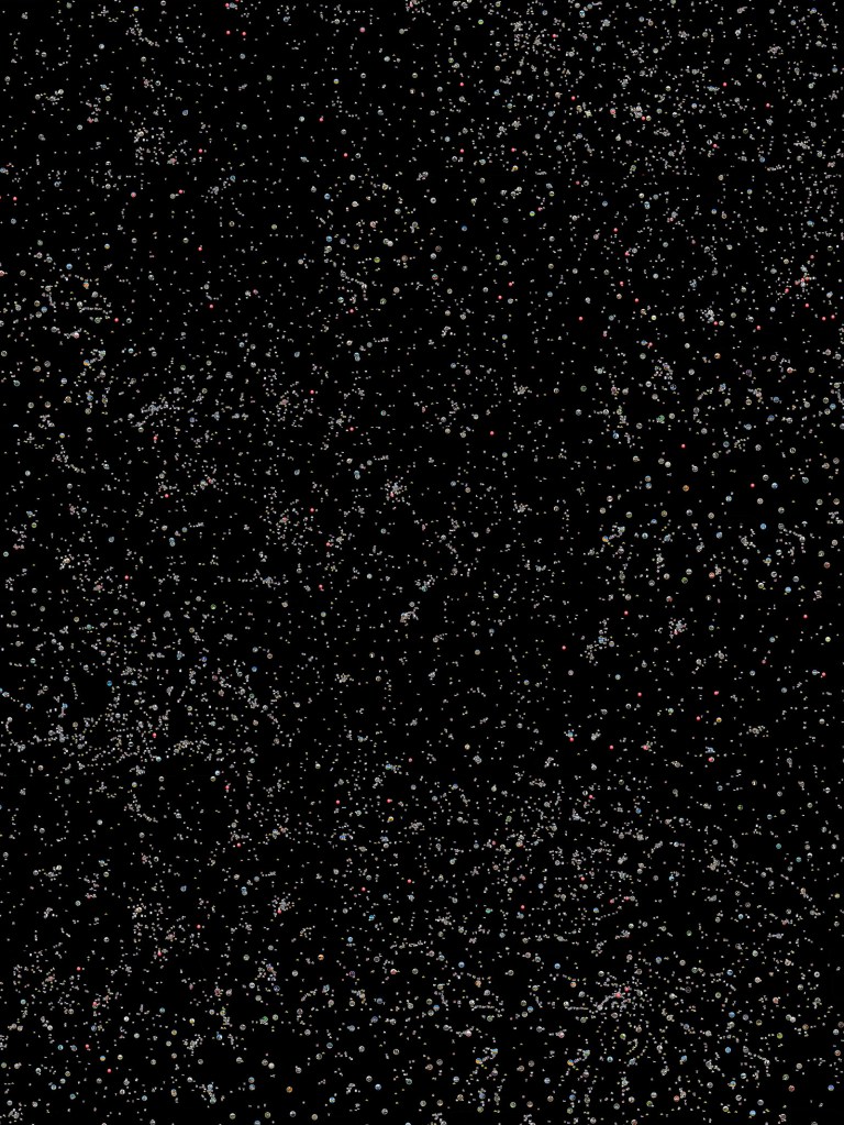 A l’opposé de cette démarche relativement passive de flâneur récoltant et enregistrant des cartes postales de Google Earth, Lionel Bayol-Thémines prend la main et, non content d’archiver ses déraillements, il intervient dans le logiciel pour le faire dérailler. Deux des protocoles de Lionel Bayol-Thémines suivent eux aussi des démarches de récolte, mais d’une récolte très sélective. L’un, Blind Zone, s’intéresse aux zones aveugles, non cartographiées par Google Earth car présumées vides de toute information d’un quelconque intérêt, en général des étendues maritimes ou des banquises près des pôles. L’artiste s’emploie à faire apparaître ces terrae incognitae (ou maria incognita). À moins qu’une censure ne soit à l’œuvre ici et n’ait dissimulé sur ordre bases de la CIA ou équipements militaires. Son autre protocole « passif », Space, consiste à sélectionner sur la carte les seuls pictogrammes indiquant des activités commerciales ou touristiques, créant ainsi une constellation de signes dénotant consumérisme et marchandise en lieu et place de la carte physique. Même s’il ne s’agit là que de recueillir telles quelles des informations disponibles dans Google Earth, la sélectivité de sa cueillette crée du sens, géographique, historique, politique ou économique.