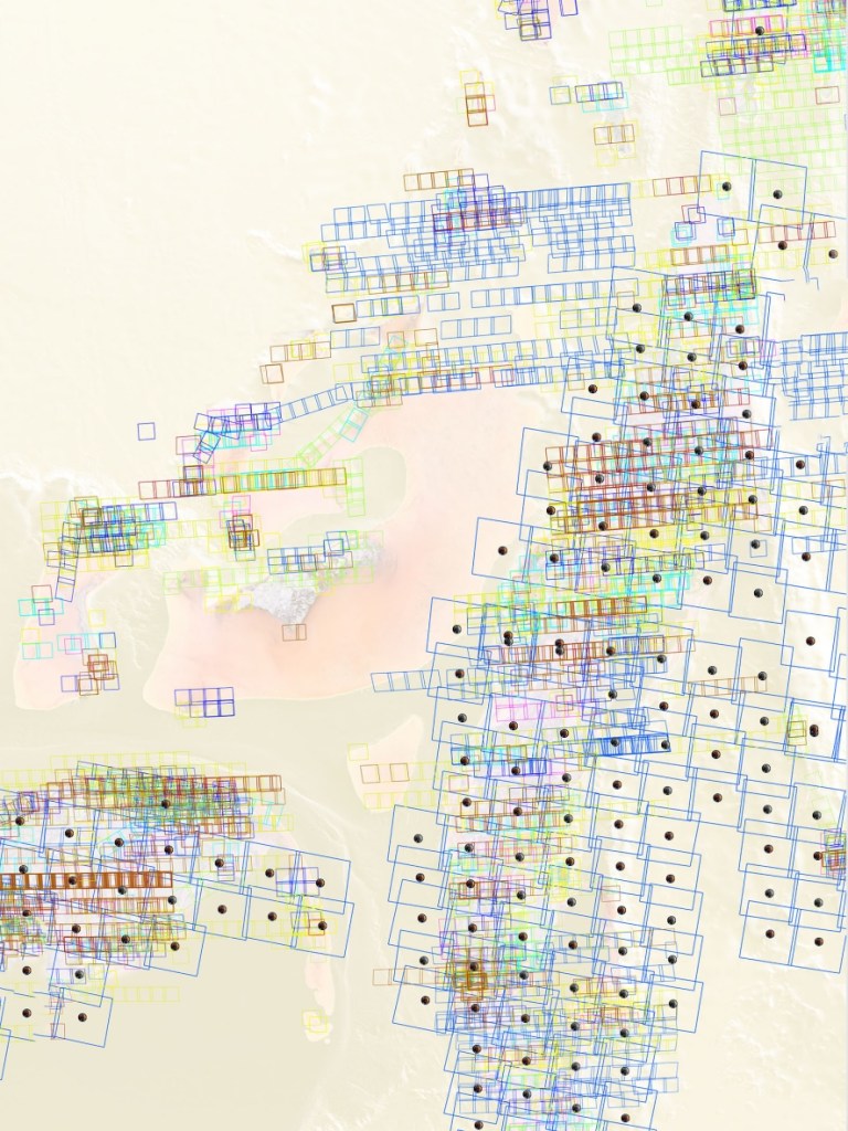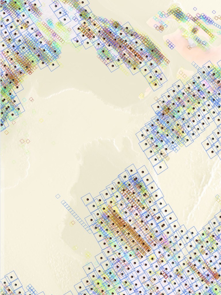 Mais la particularité de Google Earth est qu’il ne s’agit pas d’images photographiques, mais de bases de données, provenant de diverses sources et retravaillées par des algorithmes pour nous donner l’illusion d’une représentation photographique. Joanna Zylinska4 définit la photographie non-humaine comme « l’exécution d’algorithmes techniques et culturels qui régissent la fabrication et la perception des images » , et Jonathan Crary5 note que « ces images visuelles ne font plus référence à la position de l’observateur dans un monde réel et optique, mais qu’elles se réfèrent à des millions de bits de données mathématiques électroniques ; la visualité se situe sur un terrain cybernétique et électromagnétique. »5
