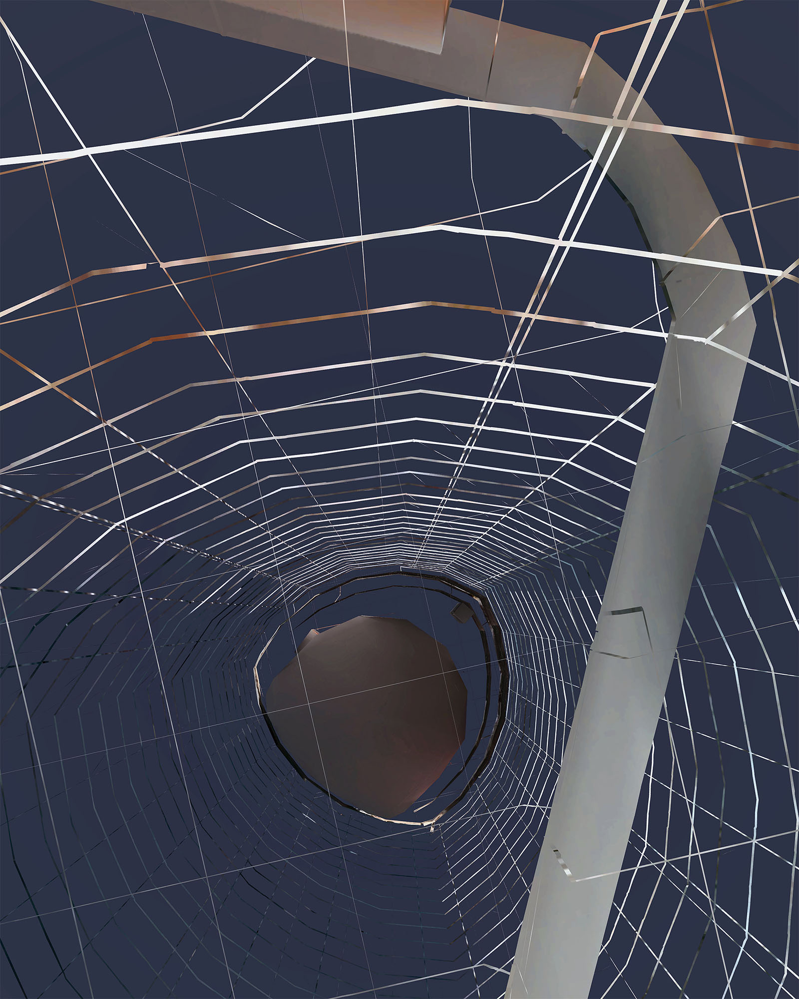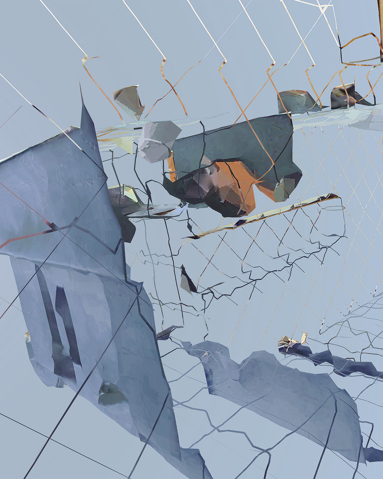 Tout comme Jon Rafman6 l’avait fait avec Google Street View, l’artiste américain Clément Valla7 a récolté des anomalies visuelles dans Google Earth, des structures, ponts, autoroutes, gratte-ciels, que l’algorithme a déformés pour leur faire épouser au plus près le relief terrestre, créant ainsi des vues aberrantes, mais validées par le système.