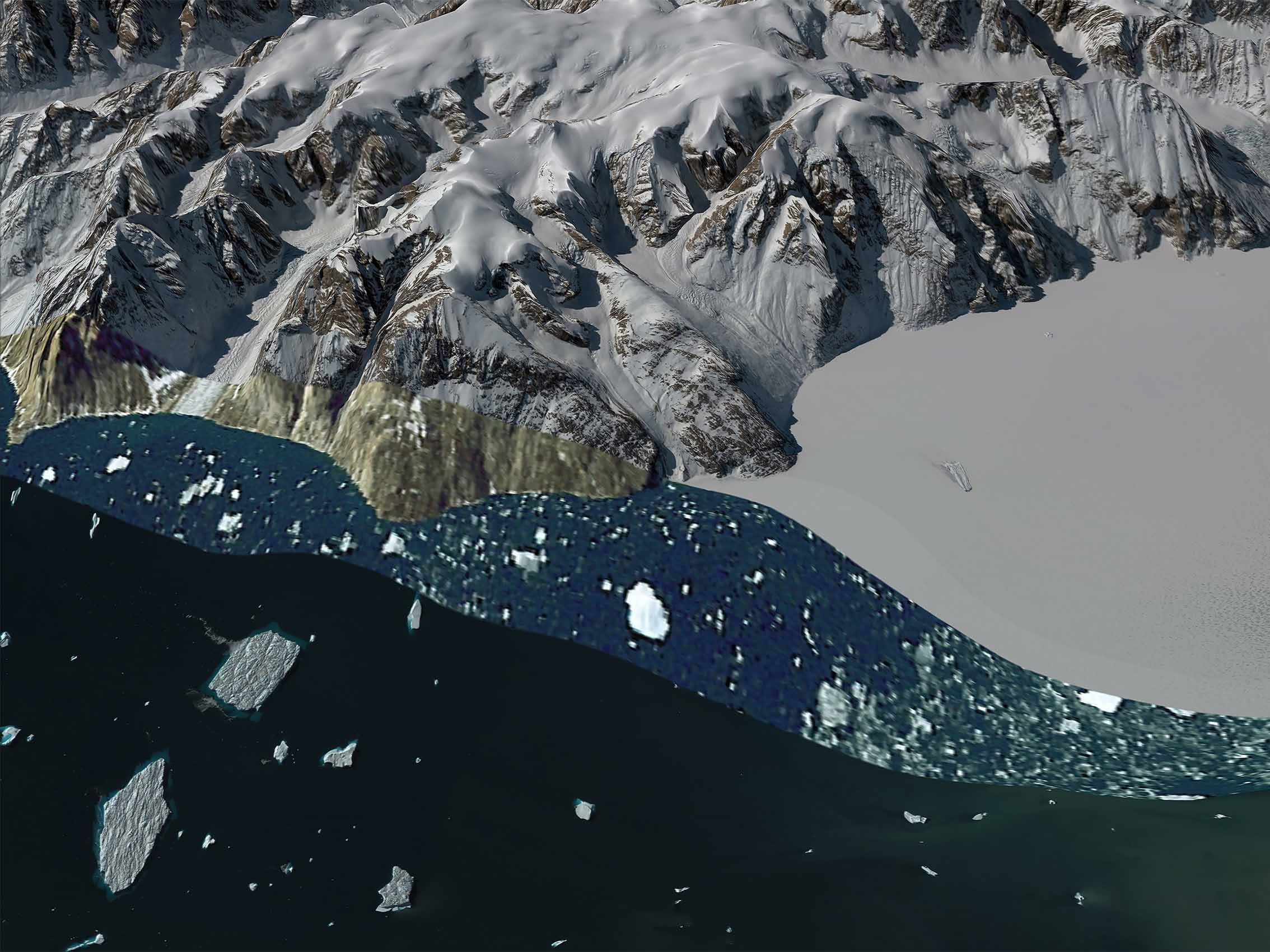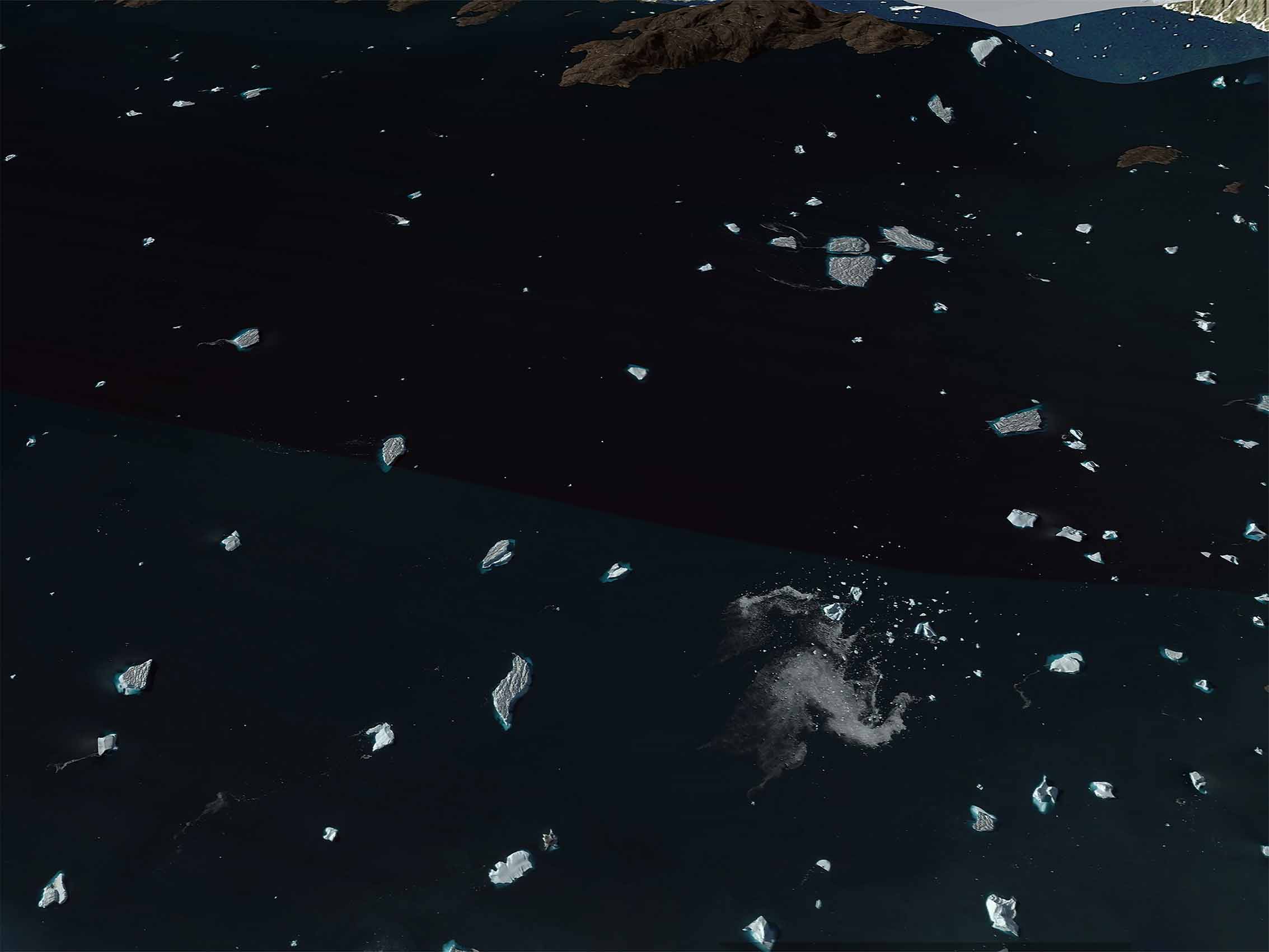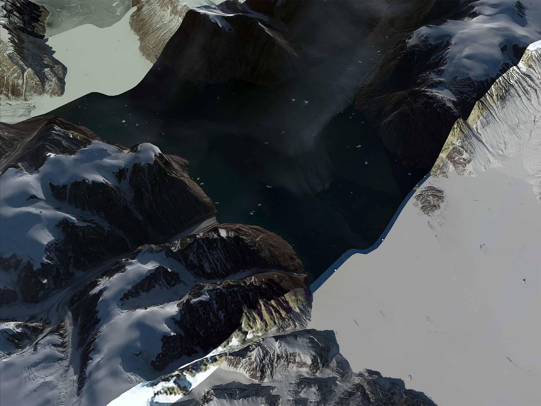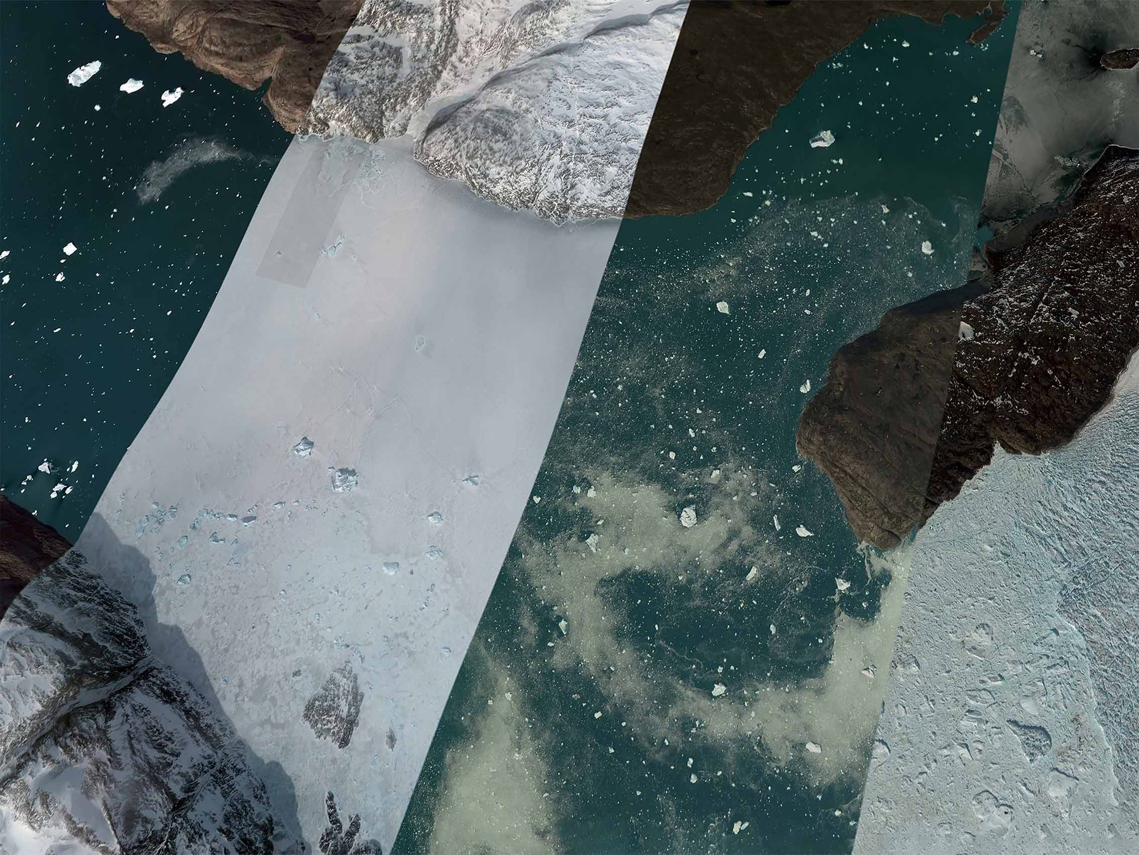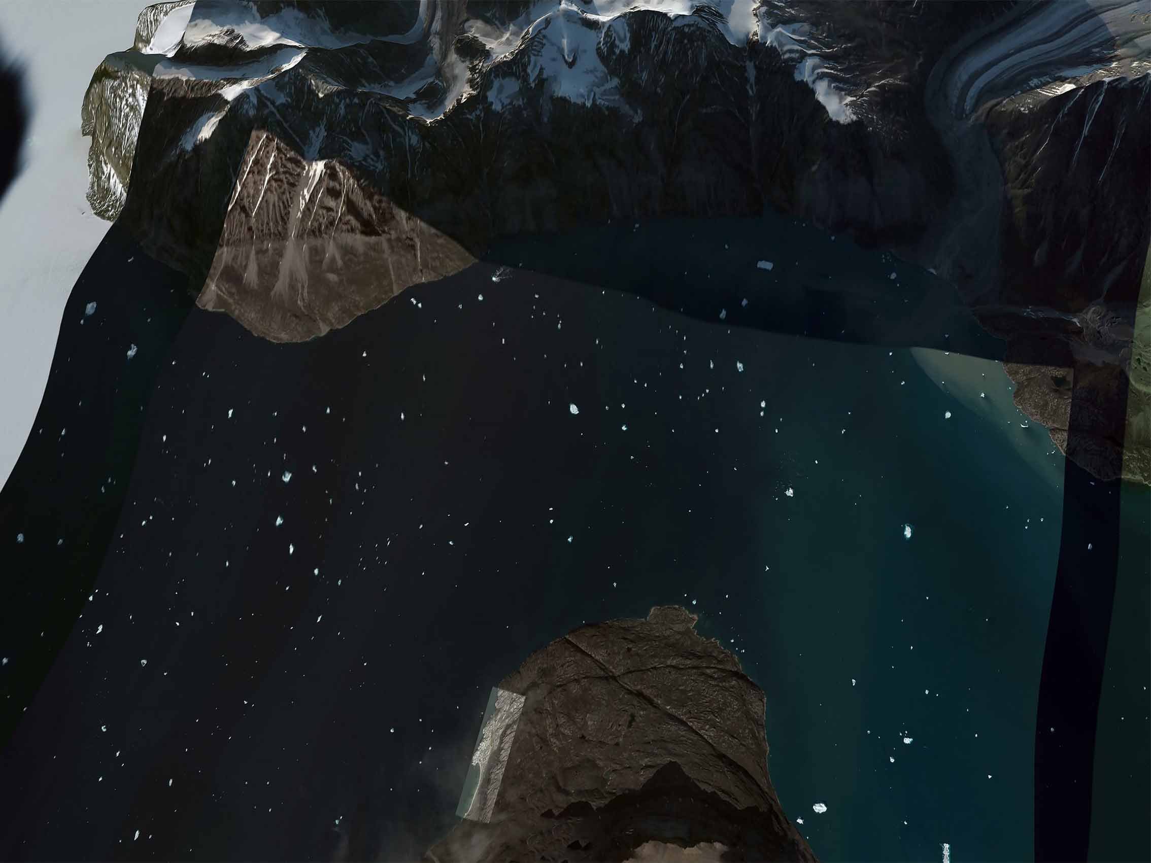 Through this first questioning on the materiality of images and their status, Waters Rising explores the subject of melting ice due to global warming on a geographical area chosen that is the coast of Greenland and questions on the consequences of the rise. waters on the coastal territories of other continents and their endangerment.